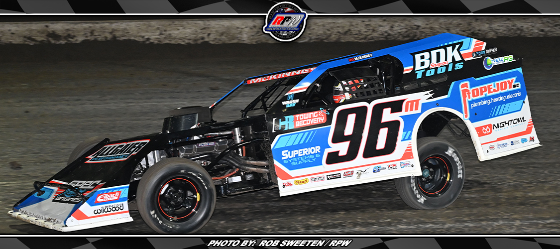 While Neville stayed at the front, McKinney did not make his lead comfortable. The former Summit Modified Nationals champion kept within a one-second gap of Neville by driving across the bottom lane while the No. 777 Lethal Chassis opted for the cushion.